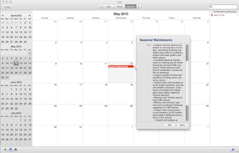 •Outlook and iCal Reminders- along with the homeowner’s manual, a data disc with files to download onto a computer’s calendar (Outlook, iCal) to remind the homeowner of important home maintenance dates.